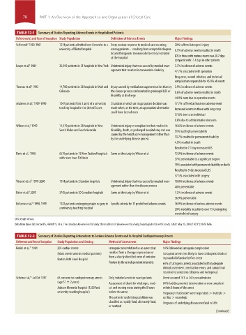 TABLE 12-2 Summary of Studies Reporting Antecedents to Serious Adverse Events and In-Hospital Cardiopulmonary Arrests