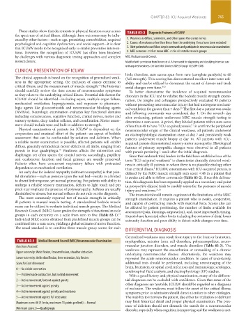 These studies show that decrements in physical function occur across     TABLE 83-2    Diagnostic Features of ICUAW
