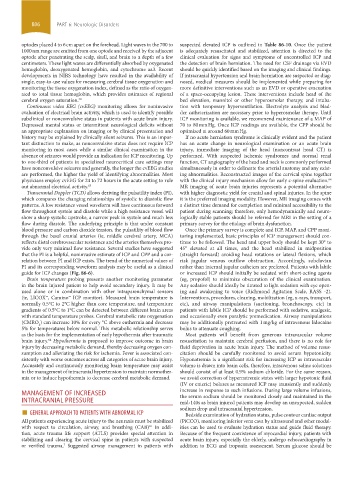 optodes placed 4 to 6 cm apart on the forehead. Light waves in the 700 to suspected elevated ICP is outlined in Table 86-10. Once the patient