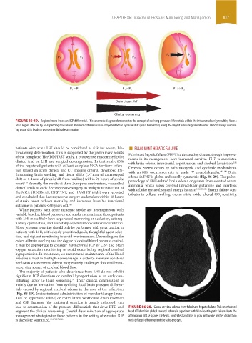 threatening brain swelling and tissue shifts (>7 mm of anteroseptal edema in FHF is global and usually symmetric (Fig. 86-20). The patho-