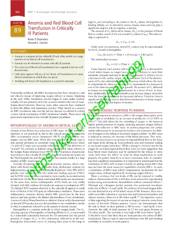 high prevalence of anemia seen in critically ill patients. Over 90% of ICU a transfusion of RBCs may inhibit compensatory mechanisms for low