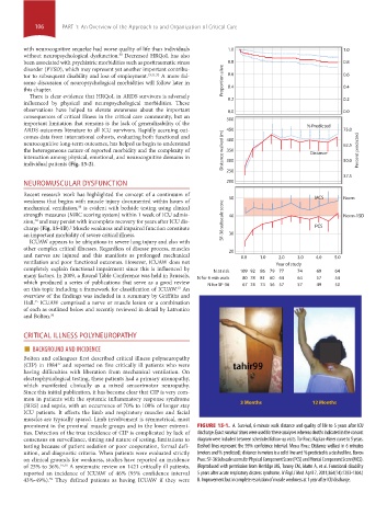 prominent in the proximal muscle groups and in the lower extremi- FIGURE 15-1. A. Survival, 6-minute walk distance and quality of life to 5 years after ICU