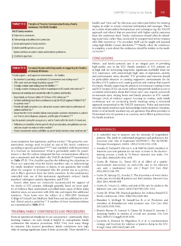 • Conduct multidisciplinary family conferences using the VALUE approach (Table 17-2) conferences and on conducting family meetings using a structured