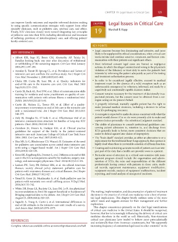 • Clarke EB, Curtis JR, Luce JM, et al. Quality indicators for • In order to be considered legally effective, consent to medical