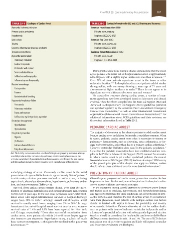 TABLE 25-1 Etiologies of Cardiac Arrest TABLE 25-2 Contact Information for BLS and ACLS Training and Resources