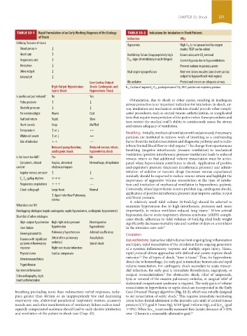 TABLE 33-1 Rapid Formulation of an Early Working Diagnosis of the Etiology TABLE 33-2 Indications for Intubation in Shock Patients