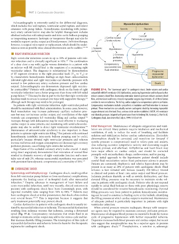 lar contractility. Patients with cardiogenic shock on the basis of right FIGURE 37-4. The “downward spiral” in cardiogenic shock. Stroke volume and cardiac
