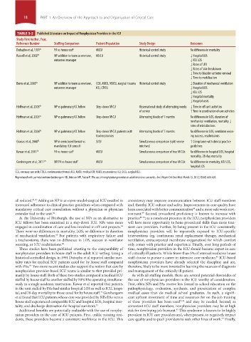 all reduced. 81,83 Adding an NP in an open-model surgical ICU resulted in consistency may improve communication between ICU staff members