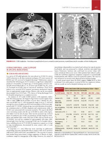 patients who survived ECLS required permanent mechanical ventila- TABLE 53-4 ECMO in Adult Patients With Acute Respiratory Failure—Clinical