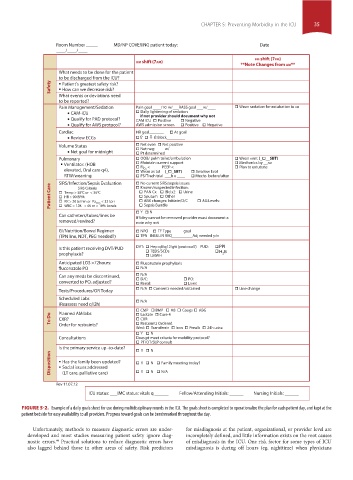 FIGURE 5-2. Example of a daily goals sheet for use during multidisciplinary rounds in the ICU. The goals sheet is completed to operationalize the plan for each patient day, and kept at the