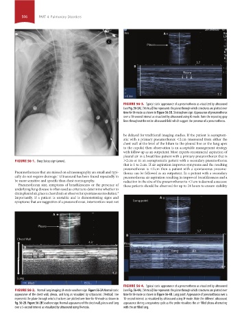 appearance of the chest wall, pleura, and lung as visualized by ultrasound. [Vertical] line time for M-mode as shown in Figure 56-4B. Lung point: Appearance of pneumothorax over a