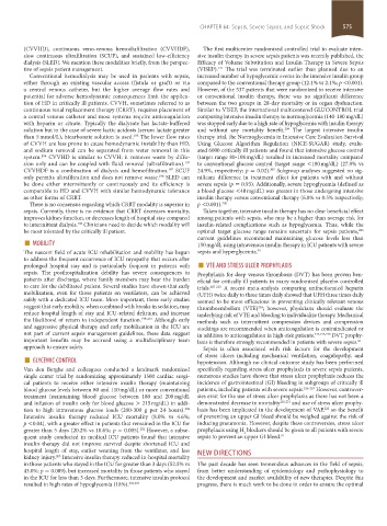 and infusion of insulin only for blood glucose > 215 mg/dL) in addi- demonstrated decrease in mortality 220,221 and use of stress ulcer prophy-