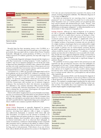 TABLE 65-3 Microbial Etiology of Community-Acquired Pneumonia Admitted