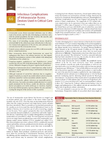 • Most intravascular device–related bacteremias are caused by publication in Table 66-1. Representative rates from other types of cath-
