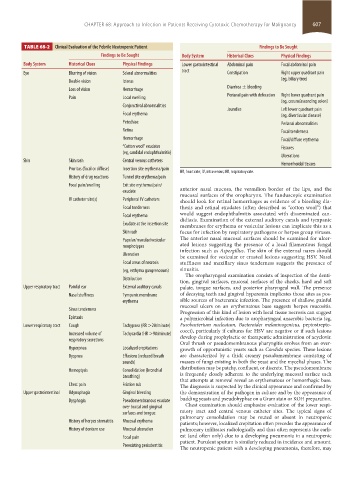 TABLE 68-2 Clinical Evaluation of the Febrile Neutropenic Patient Findings to Be Sought