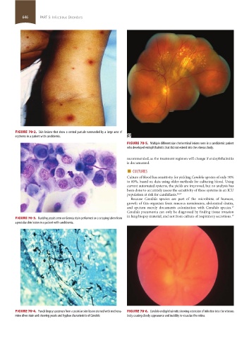 FIGURE 70-4. Punch biopsy specimen from a pustular skin lesion stained with methena- FIGURE 70-6. Candida endophthalmitis showing extension of infection into the vitreous