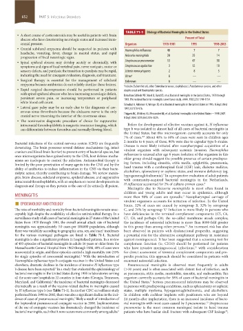 once microorganisms have gained entry to the CNS, host defense mecha- influenzae is unusual after age 6 years; isolation of the organism in this
