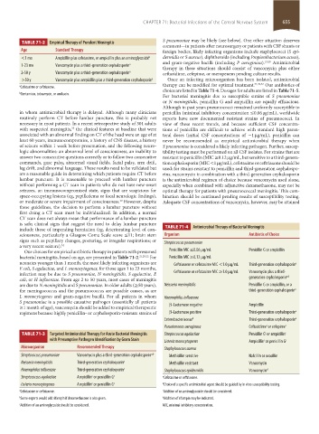 include those of impending herniation (eg, deteriorating level of con- TABLE 71-4 Antimicrobial Therapy of Bacterial Meningitis