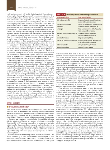 while in close proximity (≤3 feet) to the index patient. For meningococ- TABLE 71-6 Predisposing Conditions and Microbiology in Brain Abscess