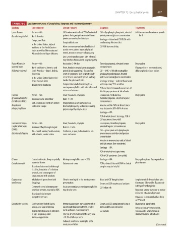 TABLE 72-2 Less Common Causes of Encephalitis, Diagnosis and Treatment Summary