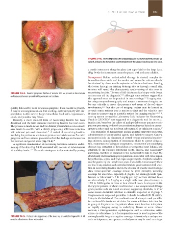 mining of the skin (Fig. 74-5) associated with necrosis of subcutaneous diseases (eg, correction of ketoacidosis or congestive heart failure), and