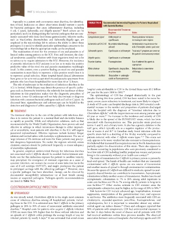 Especially in a patient with community-onset diarrhea, the identifica- TABLE 76-4 Recommended Antimicrobial Regimens for Patients Hospitalized