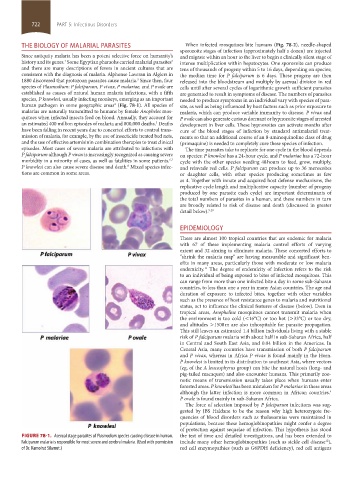THE BIOLOGY OF MALARIAL PARASITES When infected mosquitoes bite humans (Fig. 78-2), needle-shaped