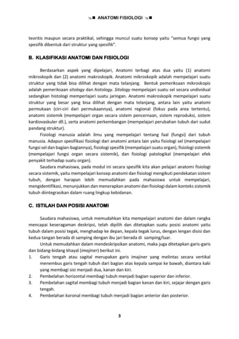 B. KLASIFIKASI ANATOMI DAN FISIOLOGI