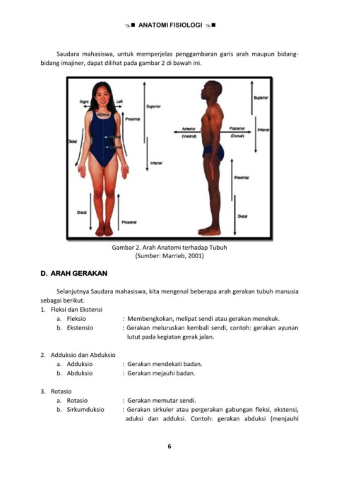 Selanjutnya Saudara mahasiswa, kita mengenal beberapa arah gerakan tubuh manusia