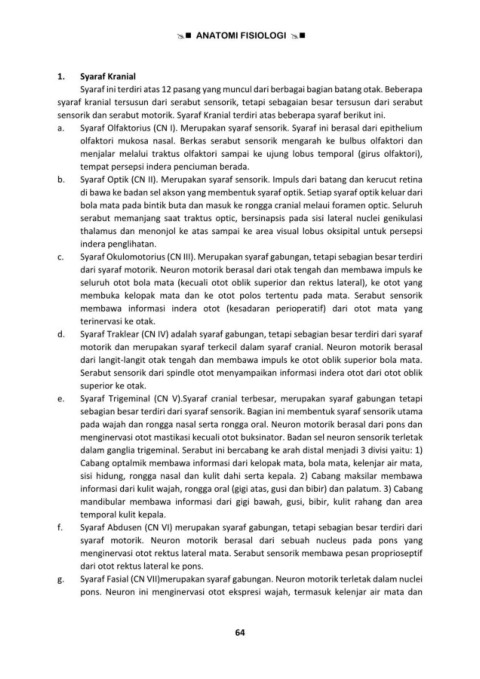 sensorik dan serabut motorik. Syaraf Kranial terdiri atas beberapa syaraf berikut ini.