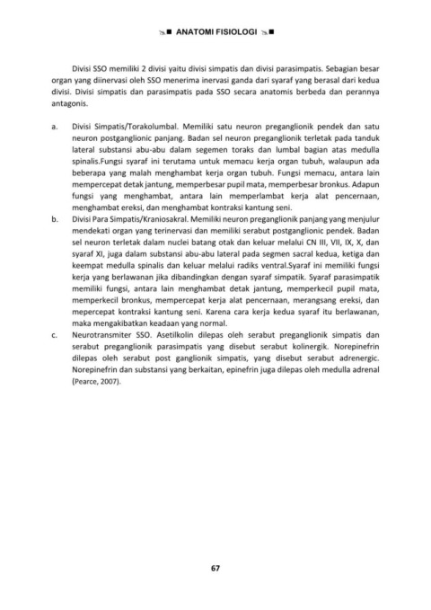 divisi. Divisi simpatis dan parasimpatis pada SSO secara anatomis berbeda dan perannya