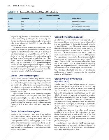 TABLE 21–3 Runyon’s Classification of Atypical Mycobacteria