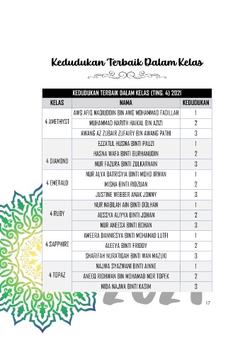 KEDUDUKAN TERBAIK DALAM KELAS (TING. 4) 2021