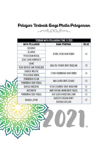 TERBAIK MATA PELAJARAN (TING. 1) 2021