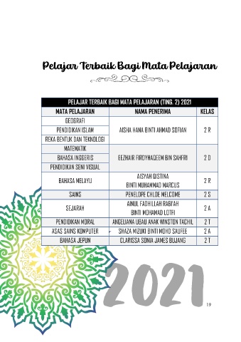 PELAJAR TERBAIK BAGI MATA PELAJARAN (TING. 2) 2021