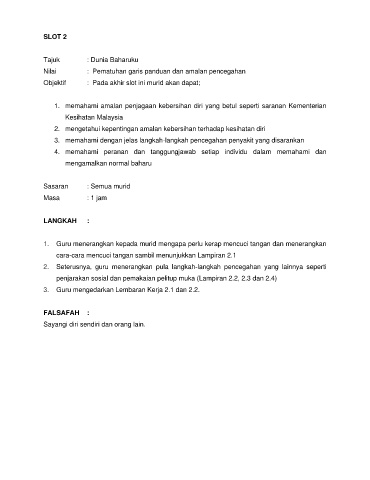 penjarakan sosial dan pemakaian pelitup muka (Lampiran 2.2, 2.3 dan 2.4)