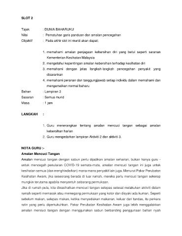 1. Guru menerangkan tentang amalan mencuci tangan sebagai amalan