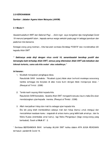“ Sekiranya anda diuji dengan virus covid 19, senantiasalah bersikap positif dan