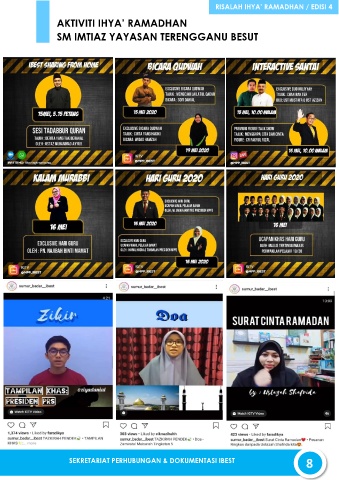 RISALAH IHYA’ RAMADHAN / EDISI 4 AKTIVITI IHYA’ RAMADHAN SM IMTIAZ YAYASAN TERENGGANU BESUT SEKRETARIAT PERHUBUNGAN & DOKUMENTASI IBEST 8