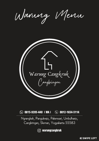 Warung Menu Warung Cangkruk Cangkringan 0815-9205-440 ( WA ) 0812-1654-3114 Ngrangkah, Pangukrejo, Palemsari, Umbulharjo, Cangkringan, Sleman, Yogyakarta 55583 warungcangkruk SWIPE LEFT