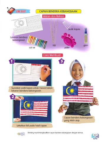 Nota Bimbing murid menghasilkan capan bendera kebangsaan dengan kemas.