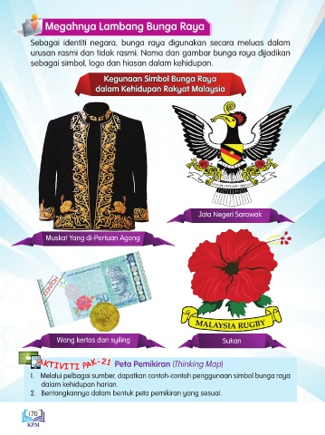 1. Melalui pelbagai sumber, dapatkan contoh-contoh penggunaan simbol bunga raya