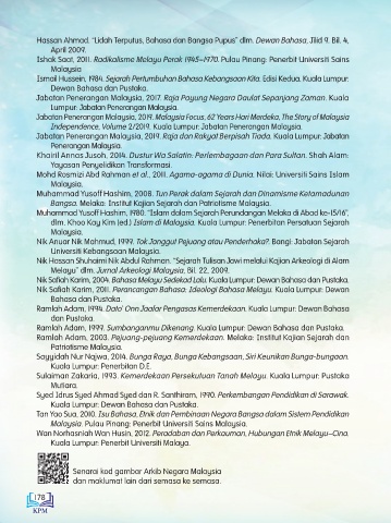 Ismail Hussein, 1984. Sejarah Pertumbuhan Bahasa Kebangsaan Kita. Edisi Kedua. Kuala Lumpur: