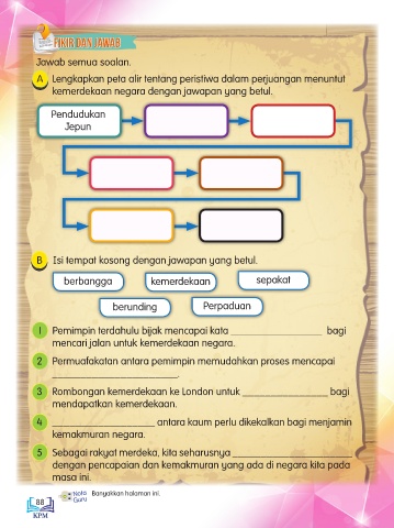 A Lengkapkan peta alir tentang peristiwa dalam perjuangan menuntut