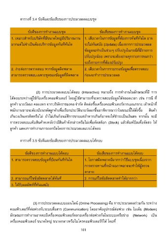 ตารางที่ 3.4 ข้อดีและข้อเสียของการประมวลผลแบบชุด