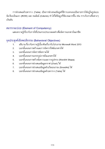 8. บอกขั้นตอนการน�าเสนอข้อมูลด้วยตาราง (Table) ได้