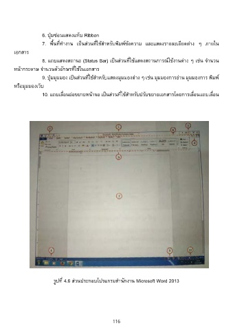 รูปที 4.6 ส่วนประกอบโปรแกรมส�านักงาน Microsoft Word 2013