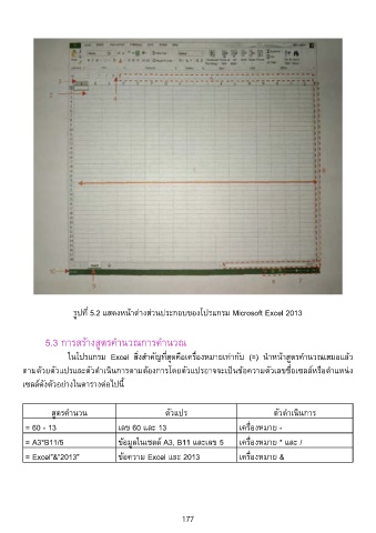 รูปที 5.2 แสดงหนาต่างส่วนประกอบของโปรแกรม Microsoft Excel 2013