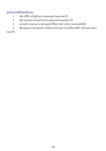 3. บอกหลักการออกแบบงานน�าเสนอไปใช้ในการจัดการข้อความลงบนสไลด์ได้
