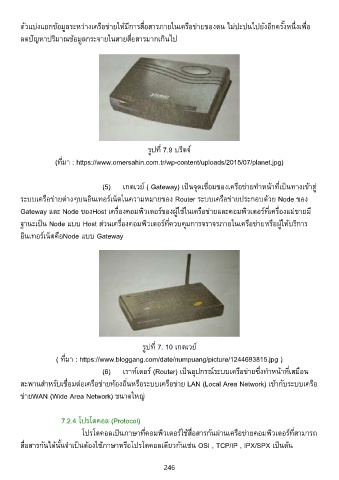 (5) เกตเวย์ ( Gateway) เป็นจุดเชื่อมของเครือข่ายท�าหน้าที่เป็นทางเข้าสู่